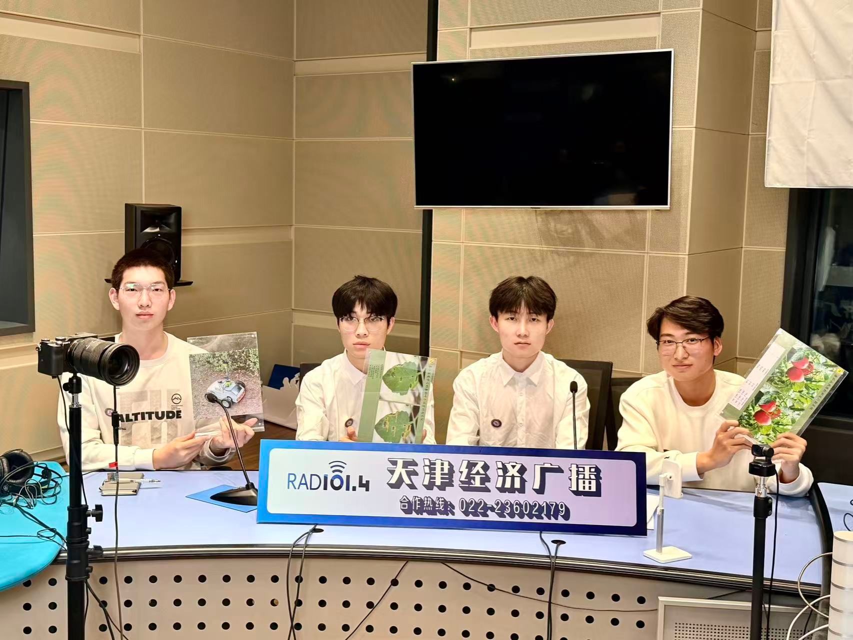 4月14日,我校工程技术学院宋欣教授指导的“益番丰顺——番茄温室巡检机器人”创业团队,受邀参加天津经济广播电视台主办的《经广非常道之十步问道》直播访谈节目,项目负责人王佳辉及核心成员赵嘉辉、侯富康、王海洋做客直播间,向广大听众分享了项目的研发背景、产品特色、技术优势,以及创业过程中遭遇的困惑、取得的收获,还有对项目未来发展的构想与憧憬。